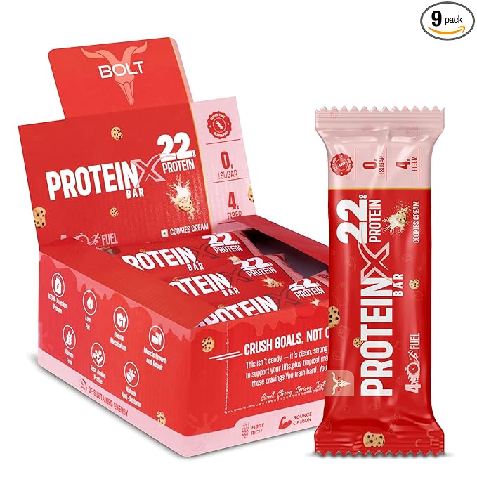 Bolt High Protein Bar | 22g Protein Per Bar | No Sugar | Gluten-Free | Power Snack for Gym, Sports & Muscle Recovery | Pack of 9 – Cookies and Cream